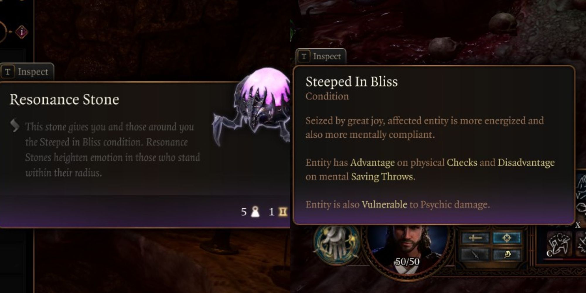 The stone grants a temporary psionic buff: resistance to psychic damage and better saves against mind effects. You’ll see a purple aura when it’s active. Why that matters: psychic attacks ignore armor and hit your mind directly, so halving that damage changes the math in fights with illithids and intellect devourers.