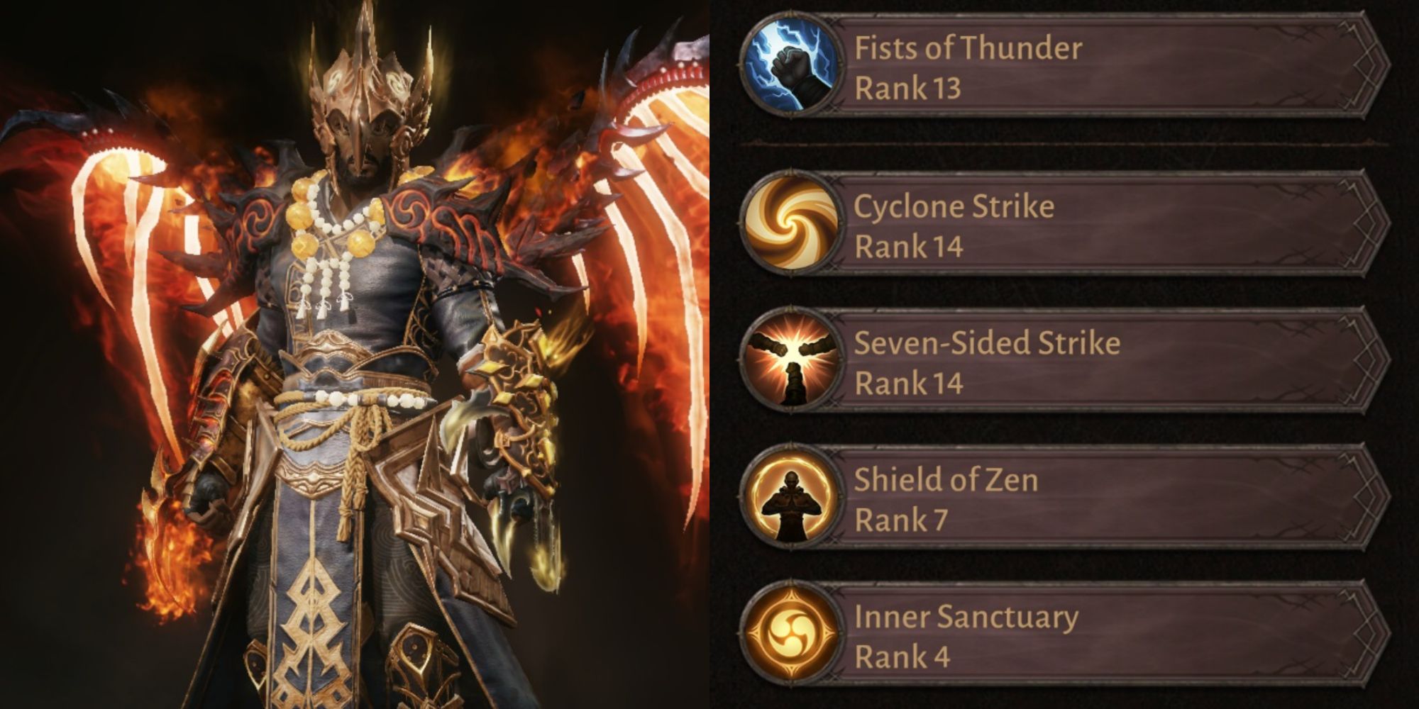 Pick skills that move you and let you burst safely. My go-to ultimate is Seven-Sided Strike because it deals huge damage and gives brief invincibility frames—use it to finish packs or buy time. Mystic Strike is the primary attack I spam between bursts for mobility and steady damage. Wave of Light clears trash fast; Flying Kick helps with both gap closing and crowd control. Always keep one defensive skill like Inner Sanctuary for emergencies—this doesn’t always work, but it often saves a run.